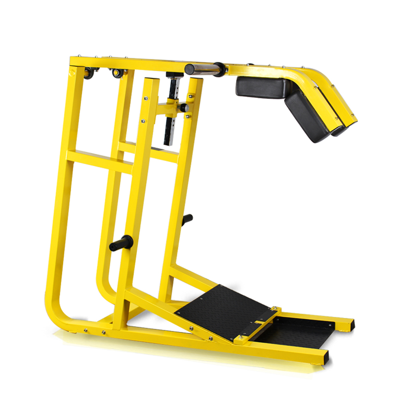 Dual-function leverage squat and calf raise machine with comfortable pads and lots of room for plate storage